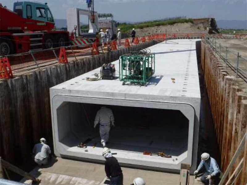 従来は硬構造の考え方であったが、近年では柔構造の考え方にシフトしてきており、SJ-BOXは緊張(剛結)されておらず、継手(製品ジョイント)がフレキシブルに可動するため地盤沈下に対応でき、この度SJ-BOXが採用された。