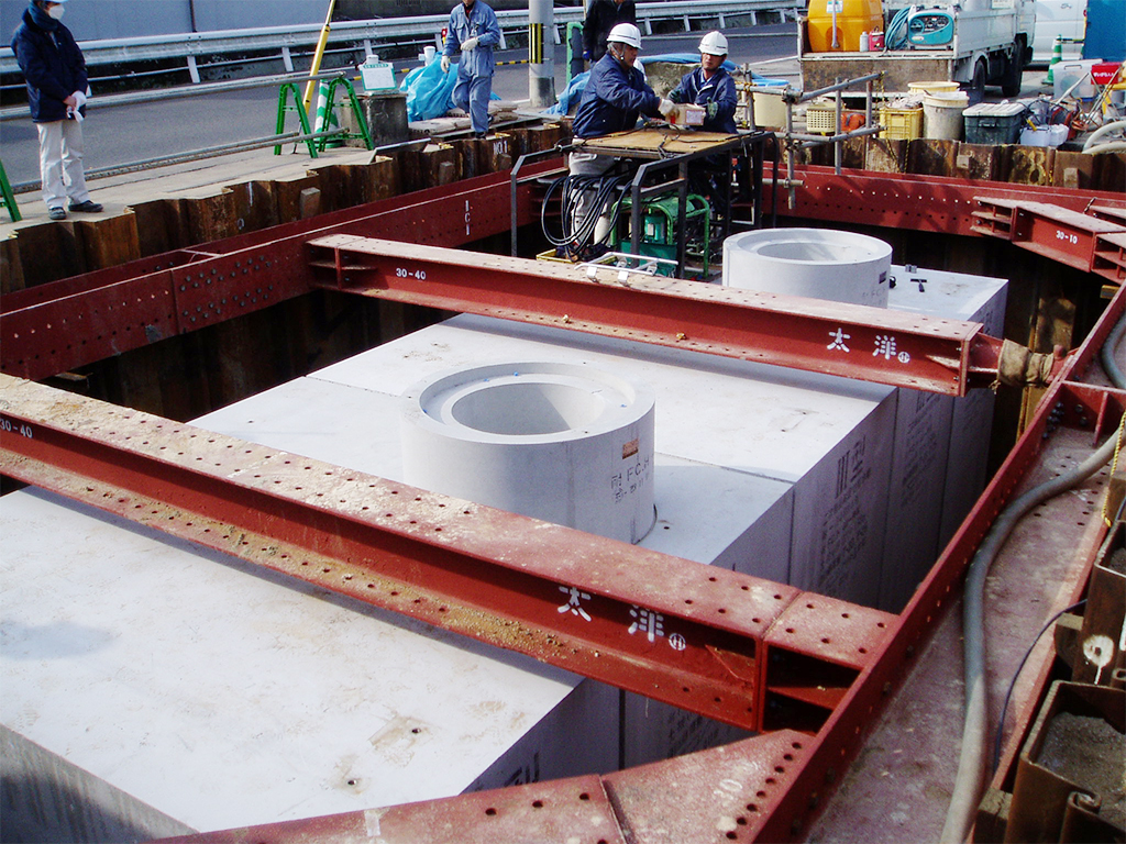 現場打ちに比べて大幅な工期短縮が可能。組合せ構造のため、熟練工を必要とせず施工が容易。