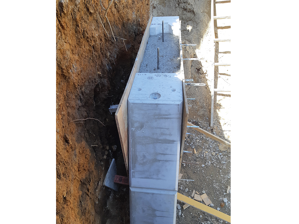 積みブロックと同時に施工できるため、施工性に優れ工期短縮となる