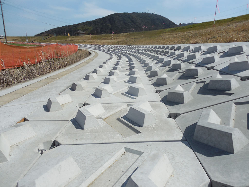 • ブロックを大型化することで機械施工となり、省力化が図れる