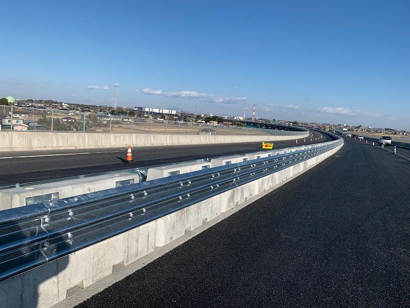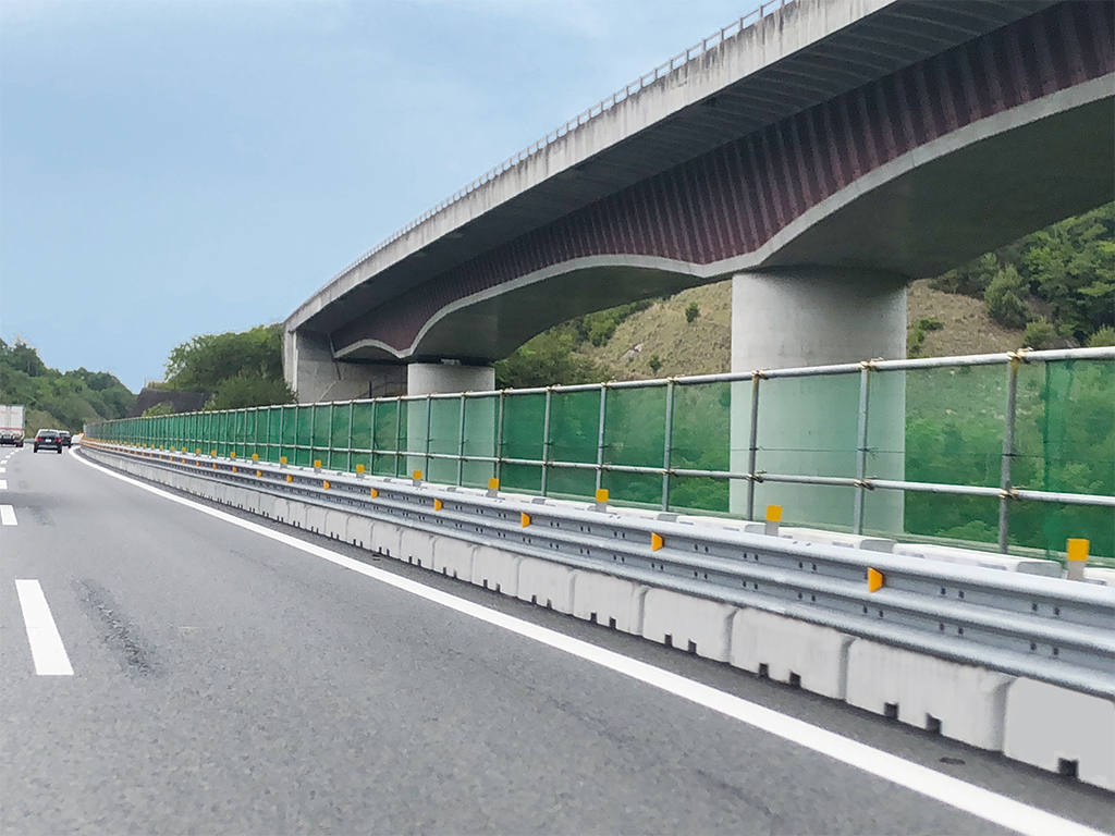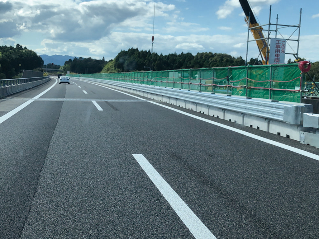 専用のガードレール取付用ベースプレートにて、壁面への設置が可能となり、道路占有幅が小さくなった