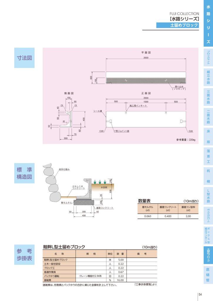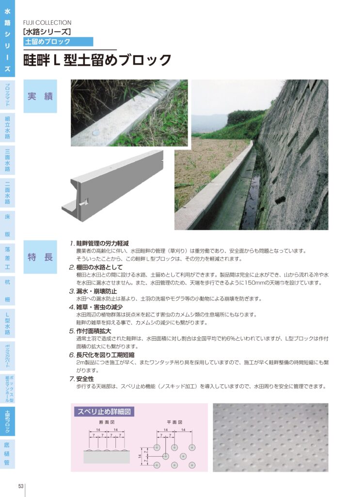 - 水田と棚田の間に設置し、止水性に優れた水路として機能。天端幅150mmで歩行も可能