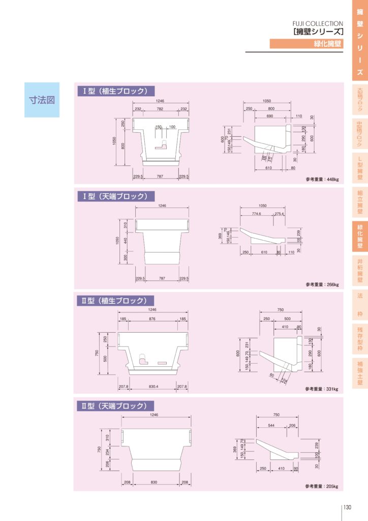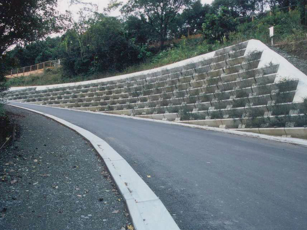 「道路土工-擁壁工指針」に準拠した法面緑化型の積みブロック