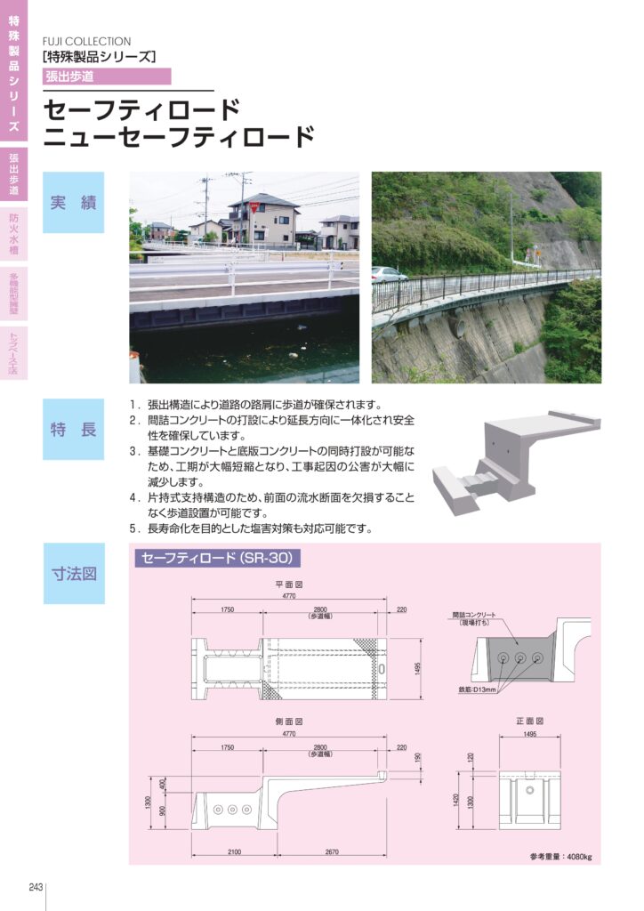 張出構造により道路の路肩に歩道が確保される