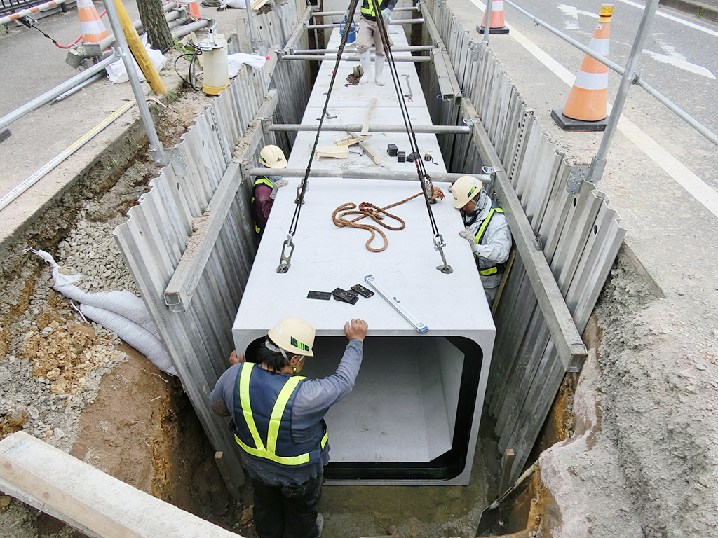 - ゴムリング1本で止水・耐性性能を有するため、製品を結合するだけですぐに埋戻しができ、施工性に優れている