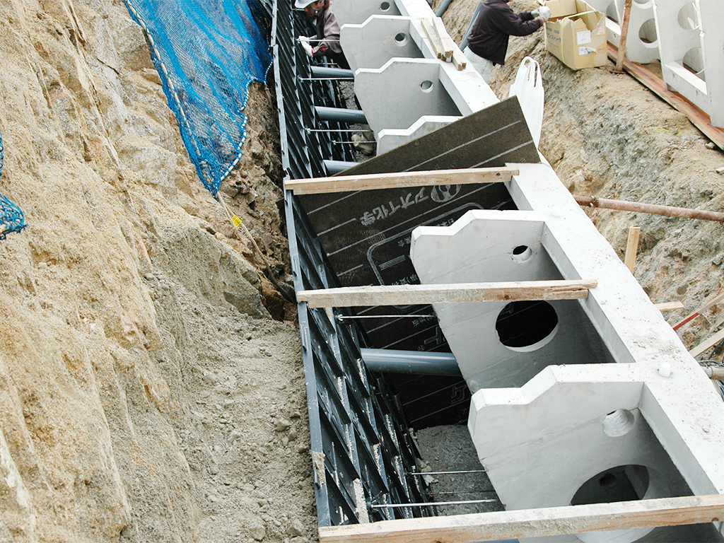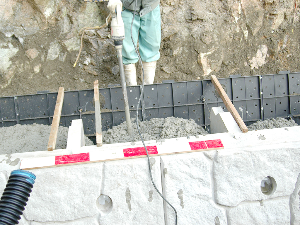 胴込・裏打コンクリートの打設圧力は、セパレータによってブロックとKCパネルを連結させることで吸収。施工時の構造変位を防止。