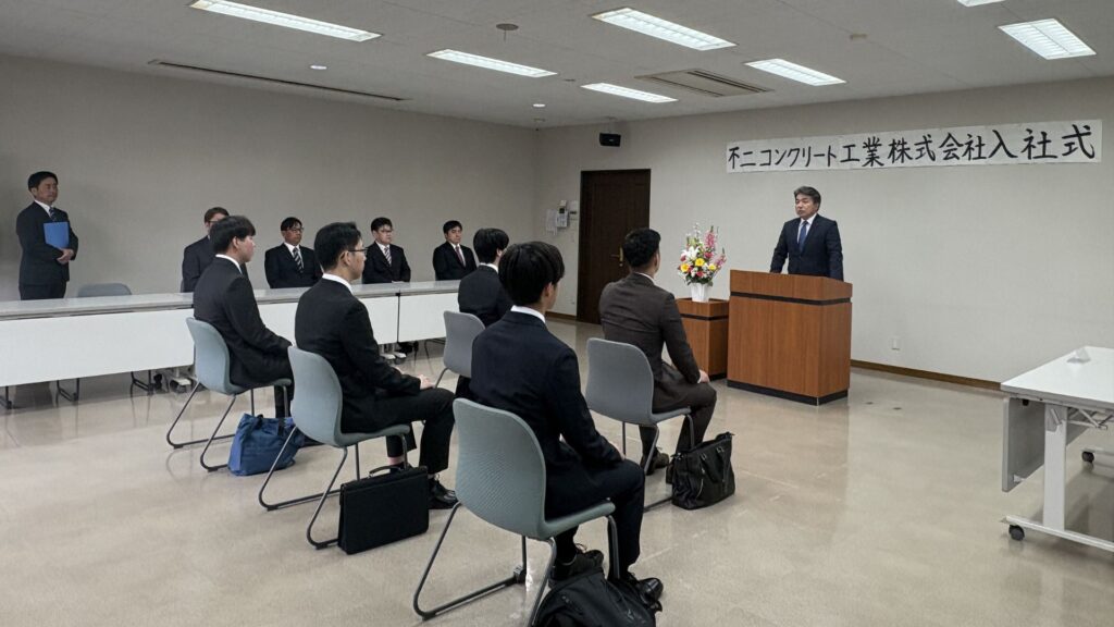 式では社長より歓迎と激励の言葉が贈られ、新しく入社された皆さんにとって新たな一歩を実感する時間となりました。また、新入社員代表の挨拶では、これからの決意や意気込みが述べられ、今後の活躍が楽しみです。